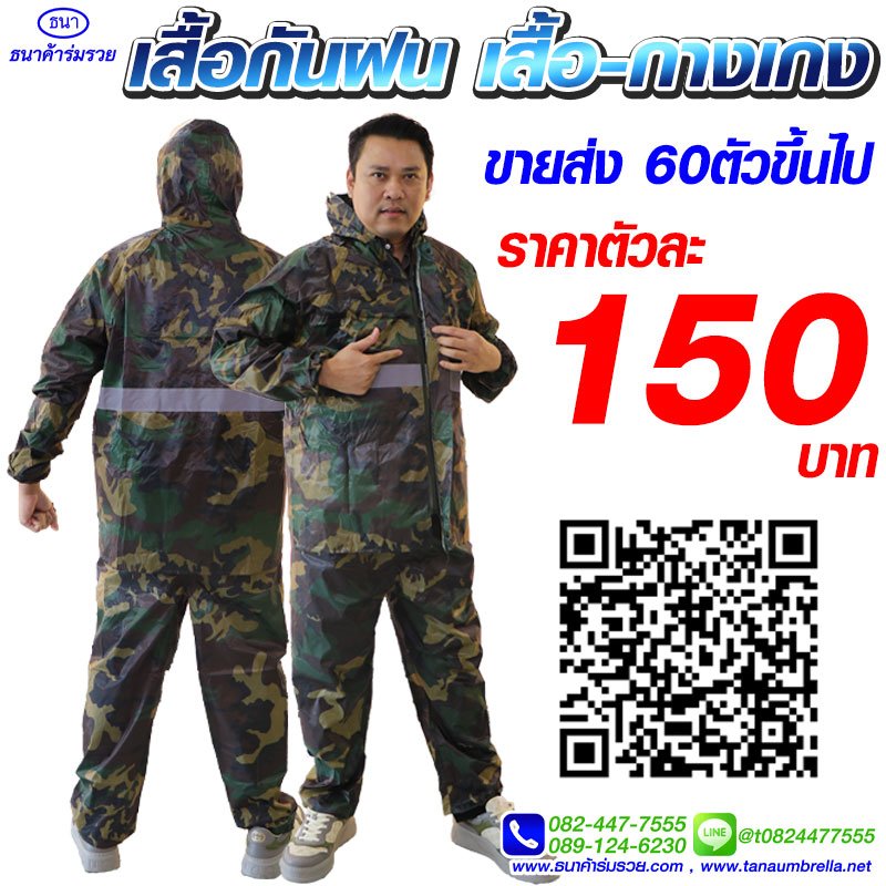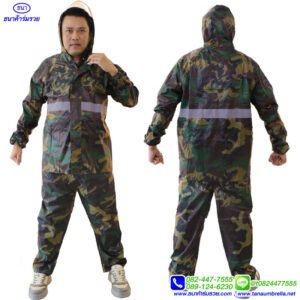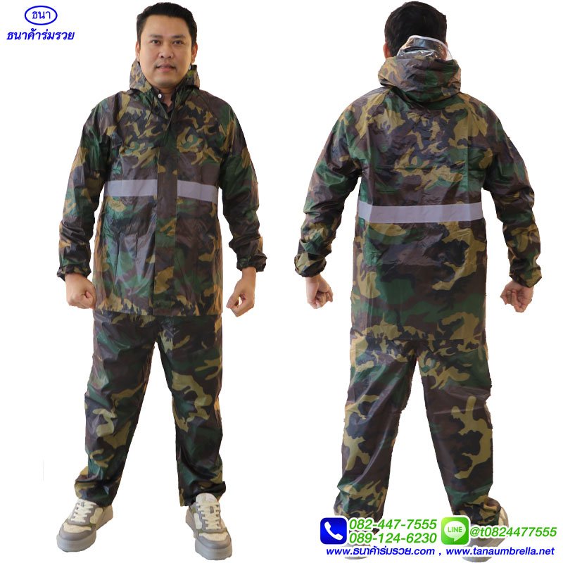 ชุดกันฝน แบบเสื้อกางเกง ลายทหาร