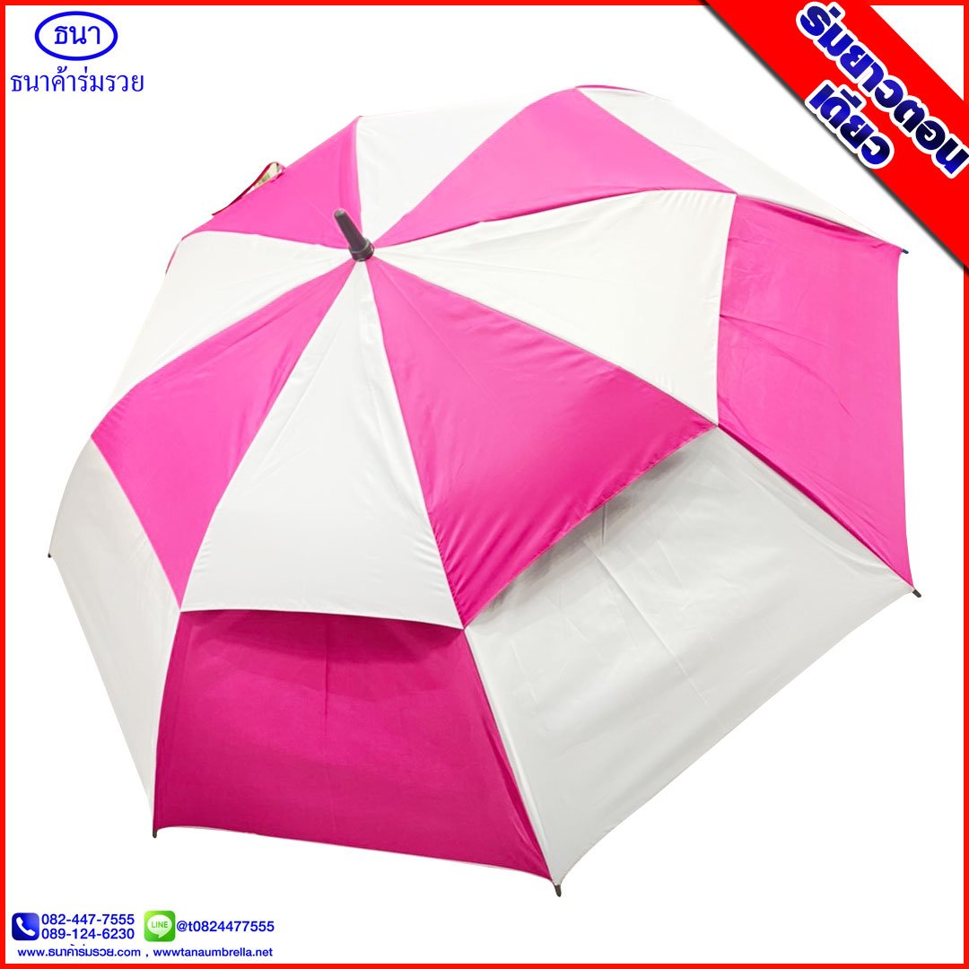 ร่มกอล์ฟสองชั้น ตอนเดียว ขนาด 30 นิ้ว กันแดด กันฝน เพิ่มเป็น 2 เท่า เพราะเป็น ร่ม 2 ชั้น เป็นตัวที่นิยมมากๆ เพราะ สามารถใช้เป็น ของพรีเมี่ยม ให้กับลูกค้า หรือ ของชำร่วย งานมงคล เช่น งานแต่งงาน งานบวช งานศพ งานฌาปนกิจ
