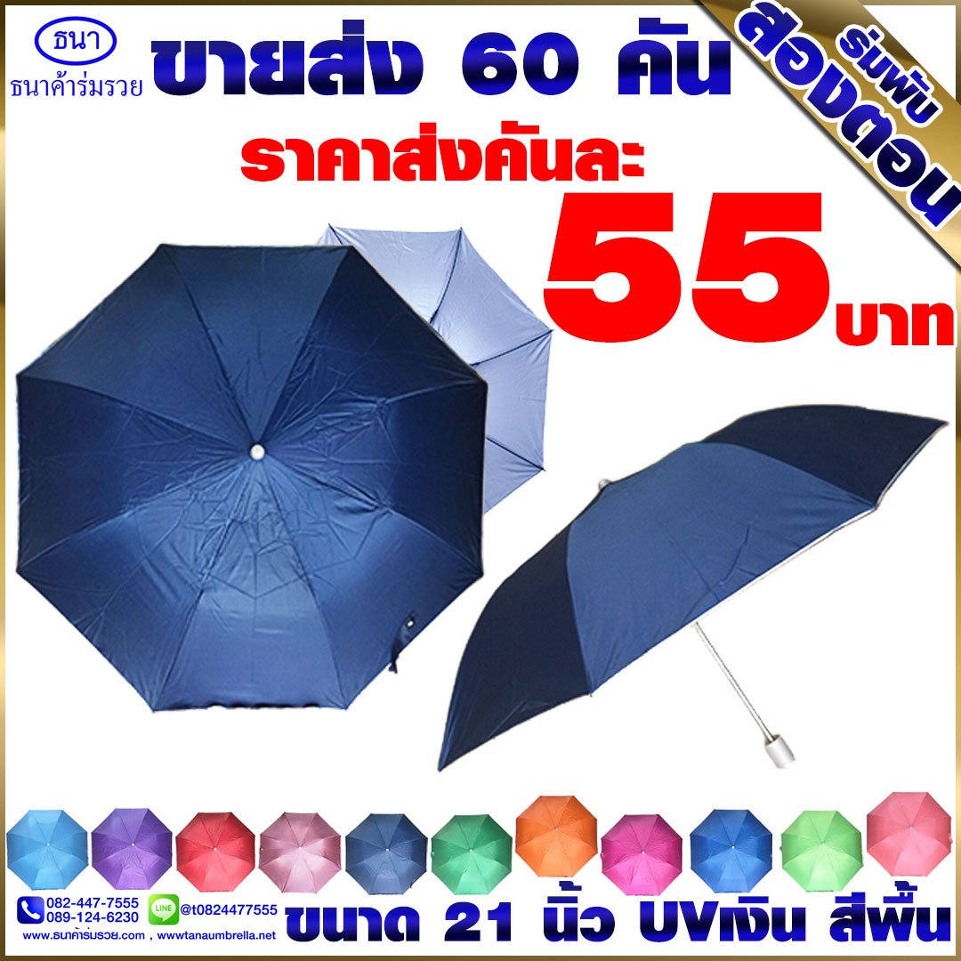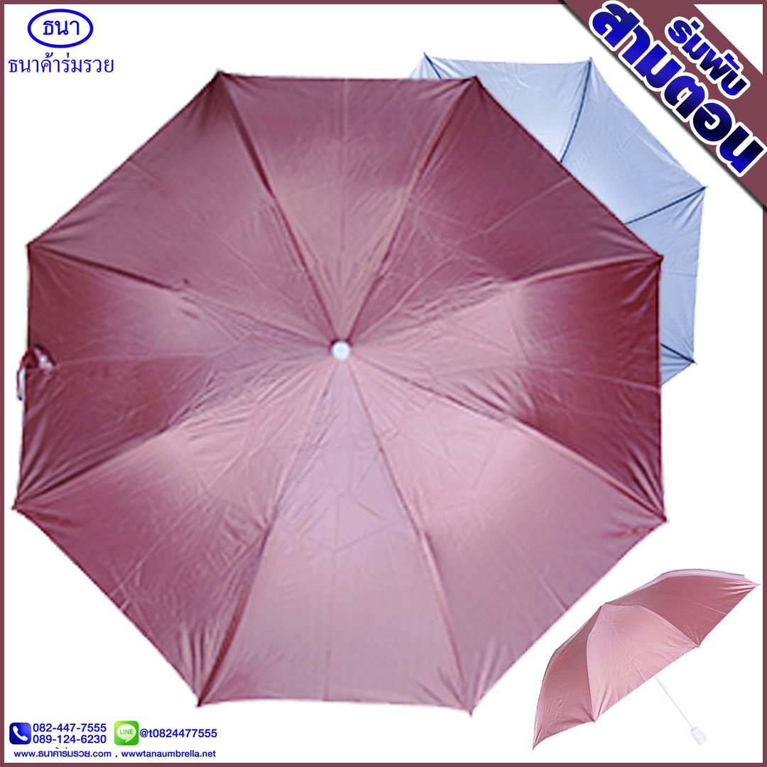 ร่มพับ 2 ตอนราคา 55 บาทค่ะ สามารถเลือกสีได้ค่ะ 1 ลัง บรรจุ 60 คัน แกนเหล็กหนาอย่างดี กางง่าย เก็บง่าย ใช้ผ้าโพลีเอสเตอร์ เคลือบป้องกันยูวีสีบรอน กันแดดได้อย่างดี เหมาะสำหรับ ลูกค้าที่ไม่ ถนัดในการพับร่ม เพราะตัวนี้พับเก็บง่ายมากค่ะ