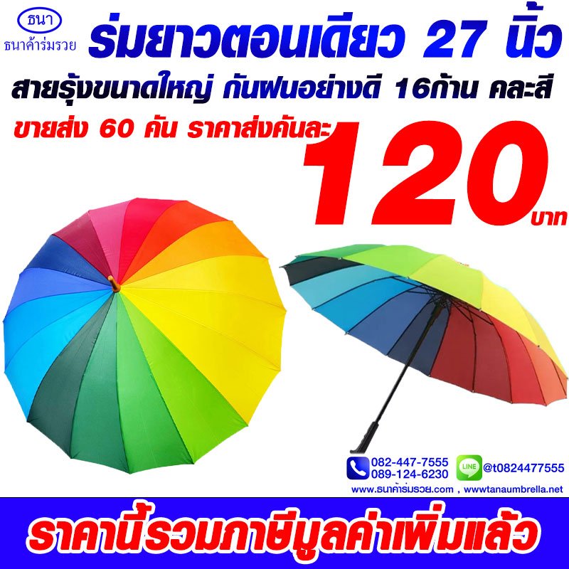 ร่มยาว ตอนเดียว สายรุ้งด้ามตรง