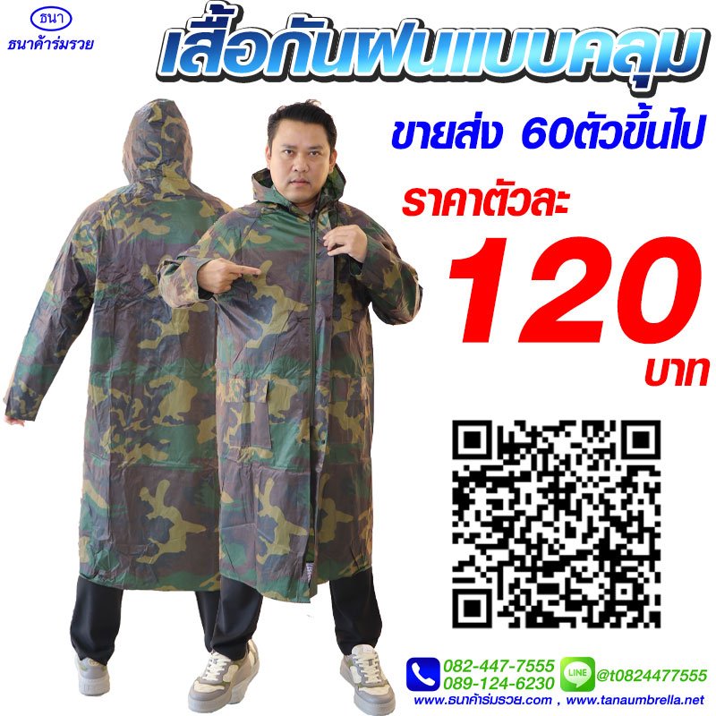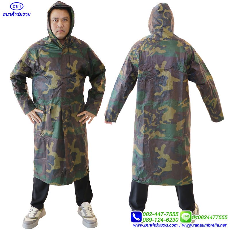 เสื้อกันฝน ชุดกันฝน แบบคลุม ลายทหาร