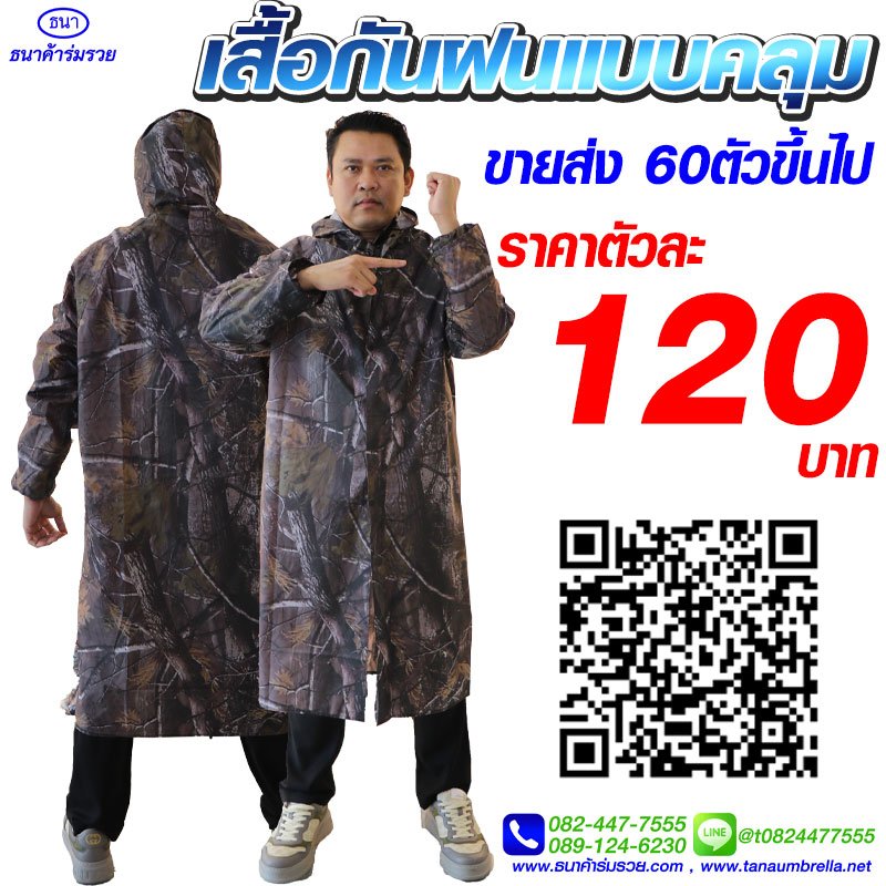 เสื้อกันฝน ชุดกันฝน แบบคลุม ลายพราง